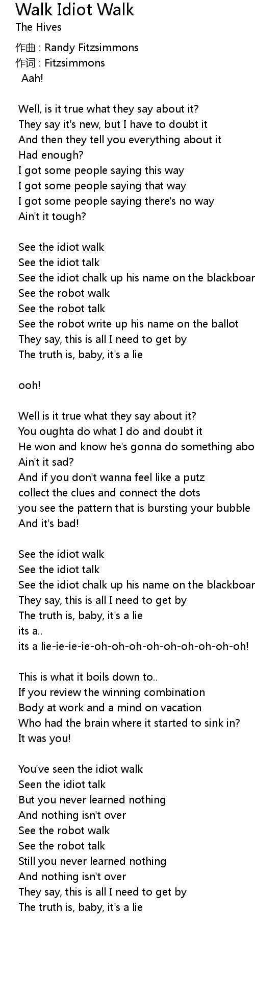 | 歌曲 | Walk Idiot Walk |