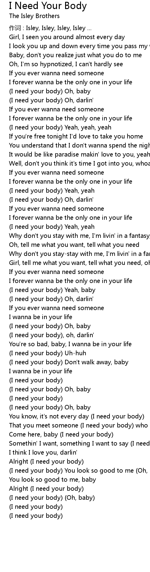 | 歌曲 | I Need Your Body |