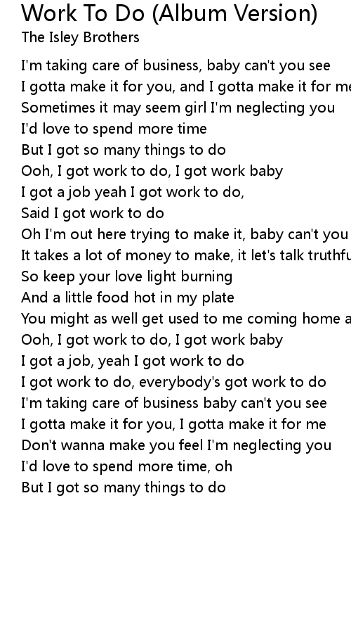 Work To Do (Album Version) 歌词