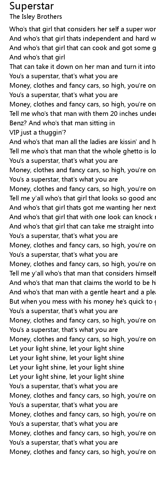 You's a superstar, that's what you are |