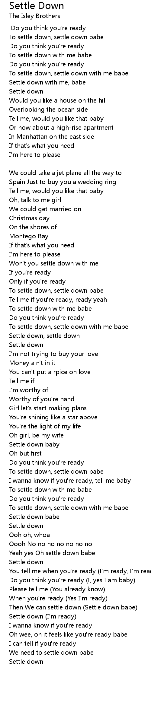 To settle down, settle down babe |