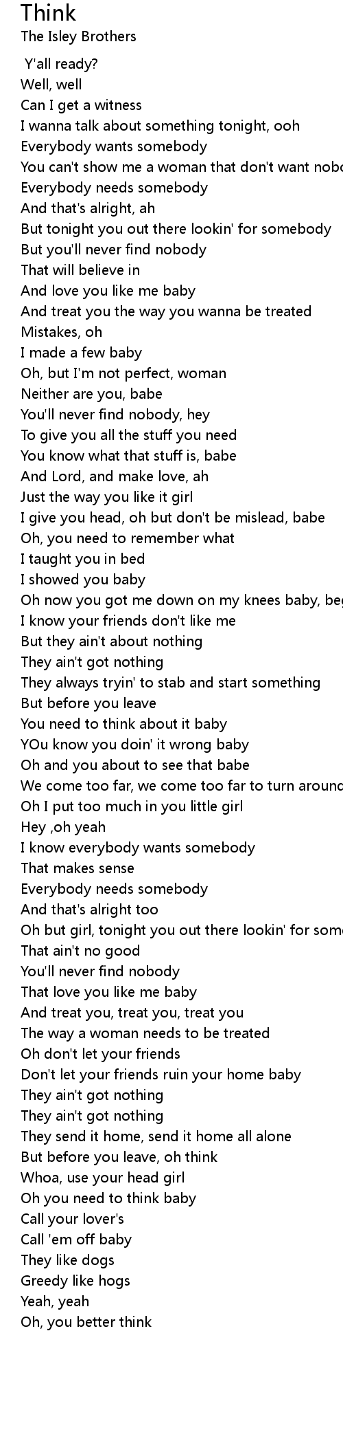 Oh you need to think baby |