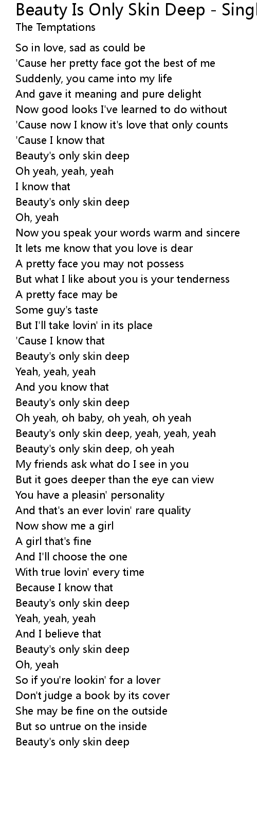 Beauty's only skin deep, yeah, yeah, yeah |