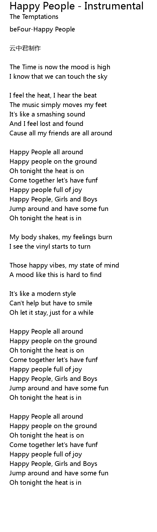 | 歌曲 | Happy People - Instrumental |