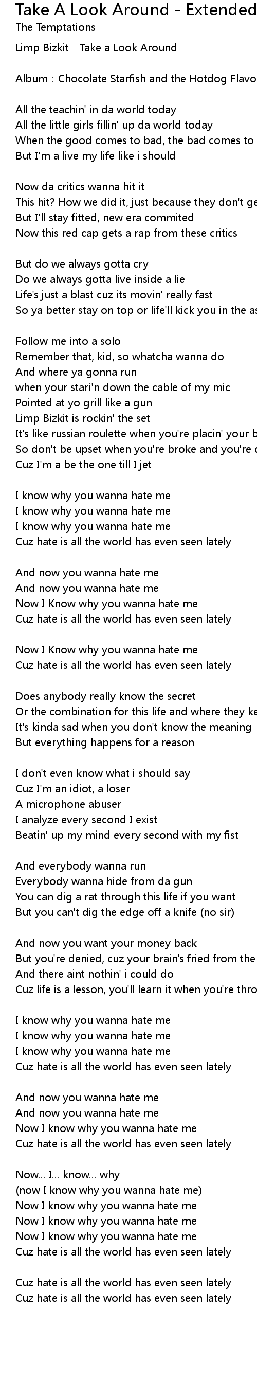 | Now I Know why you wanna hate me | |
