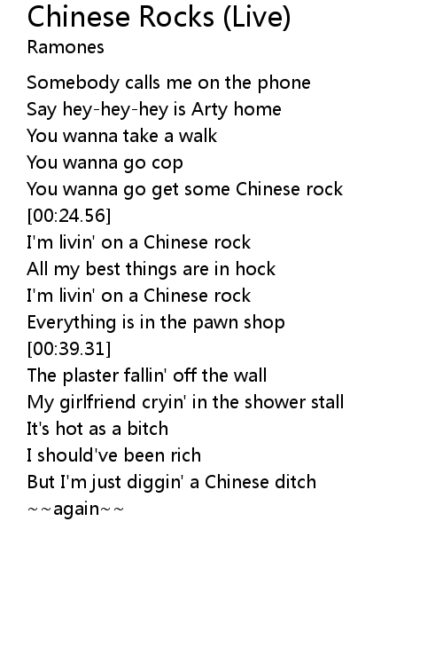 | [00:25.06] | I'm livin' on a Chinese rock |