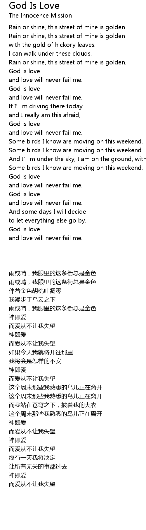 | 歌曲 | God Is Love |
