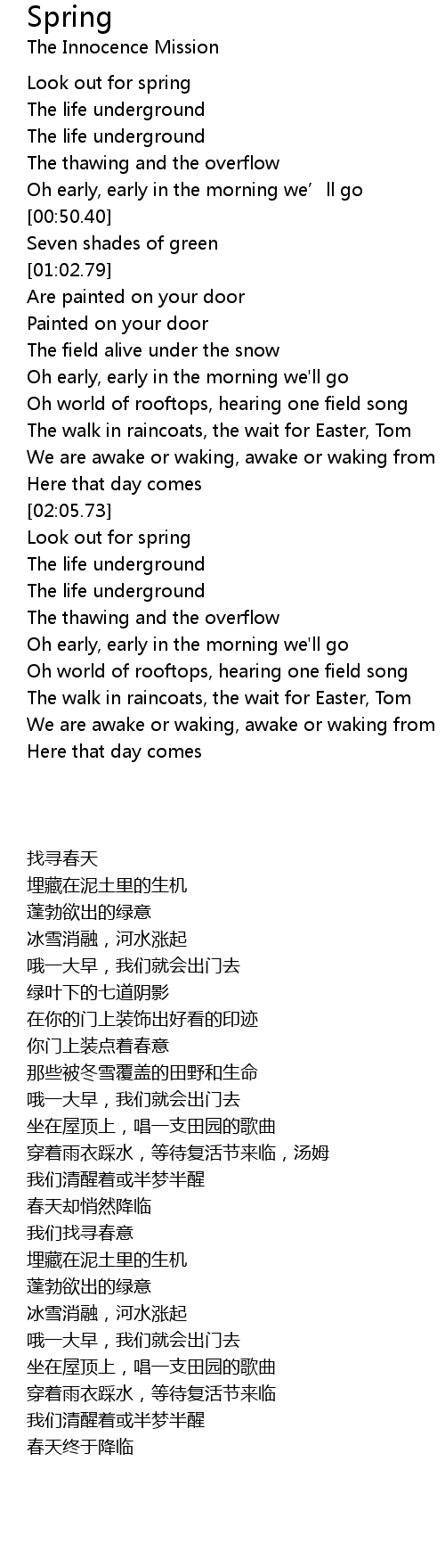 | [02:14.04] | Look out for spring |
