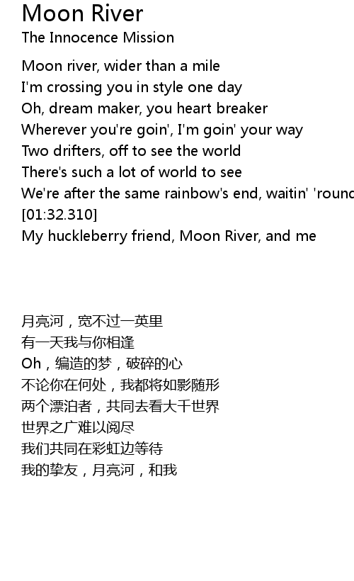 | [01:32.320] | 我的挚友,月亮河,和我 |