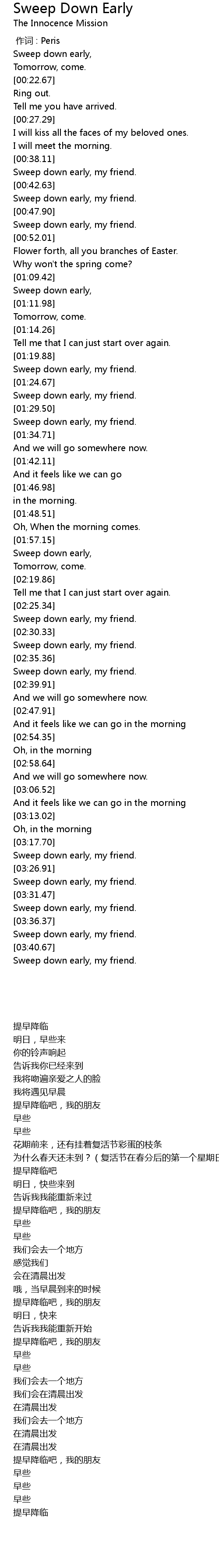 | [03:33.55] | 早些 |
