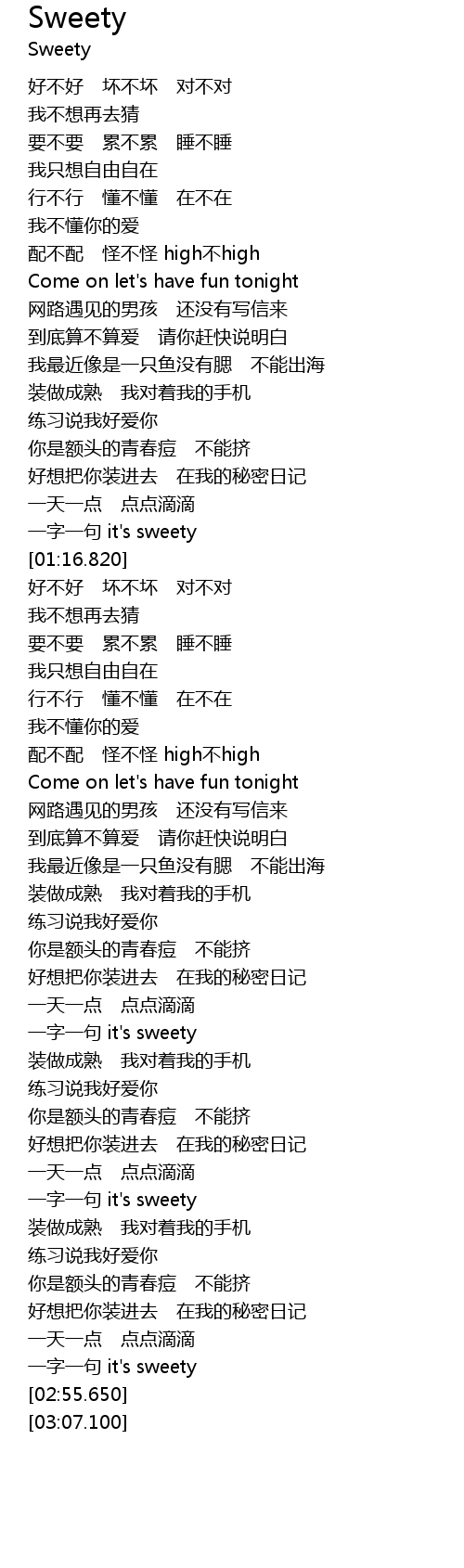 | [02:35.250] | 一字一句 it's sweety |