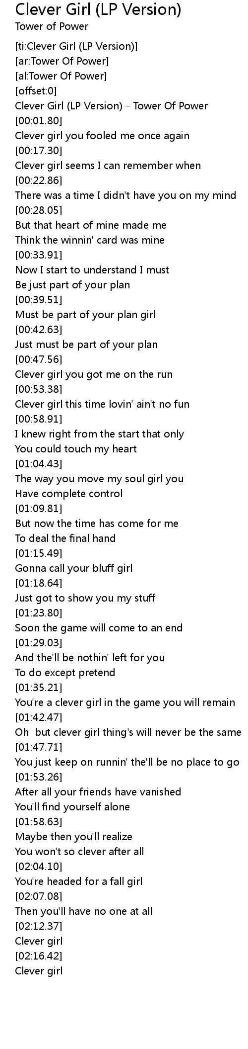 [ti:Clever Girl (LP Version)] |