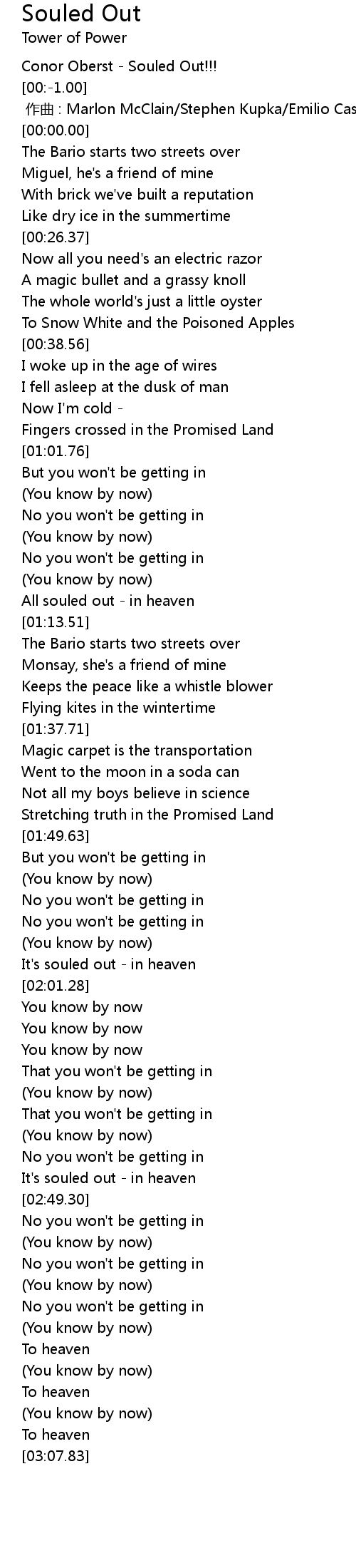 | [01:10.88] | All souled out - in heaven |