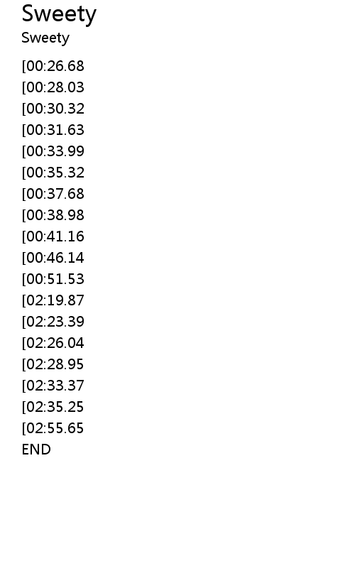 | [02:52.67][02:35.25][02:17.83][01:14.60] | 一字一句 it's sweety |