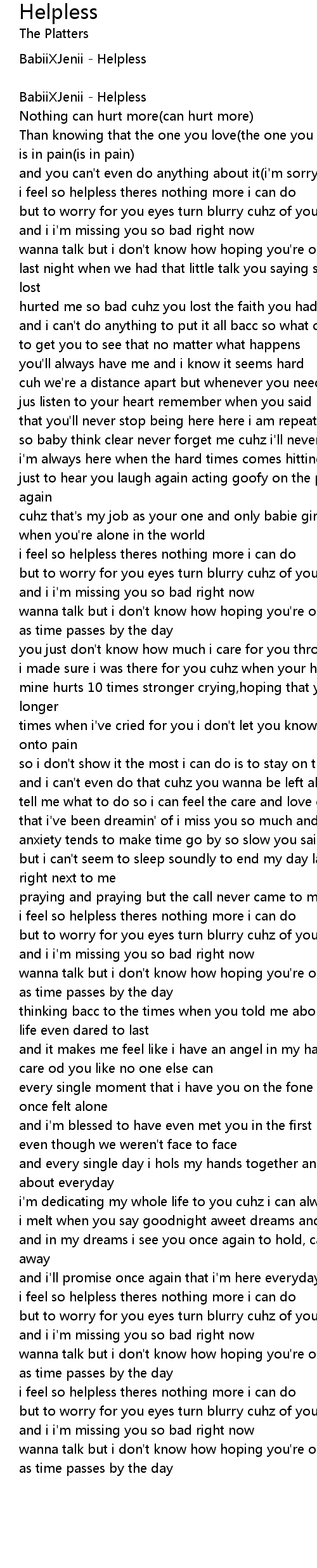 i feel so helpless theres nothing more i can do |