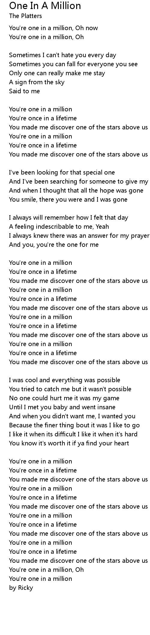 You're one in a million, Oh now