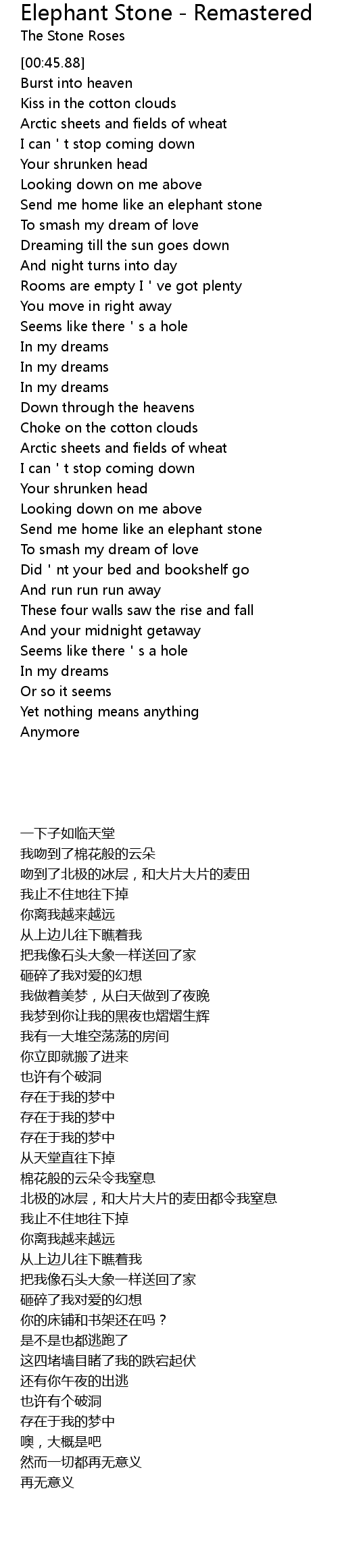 | [02:09.86] | 把我像石头大象一样送回了家 |