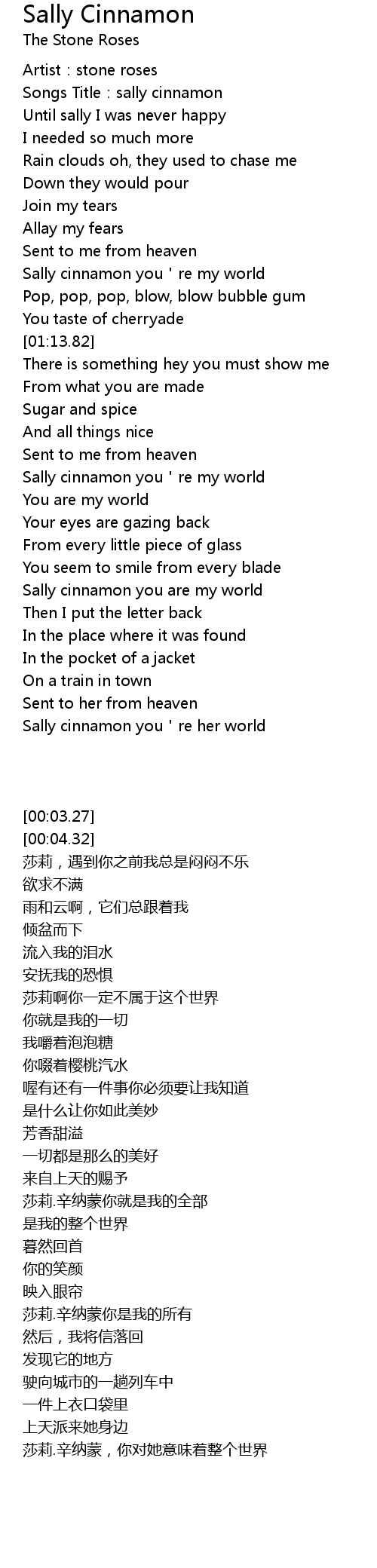 | [01:40.20] | Sally cinnamon you're my world |