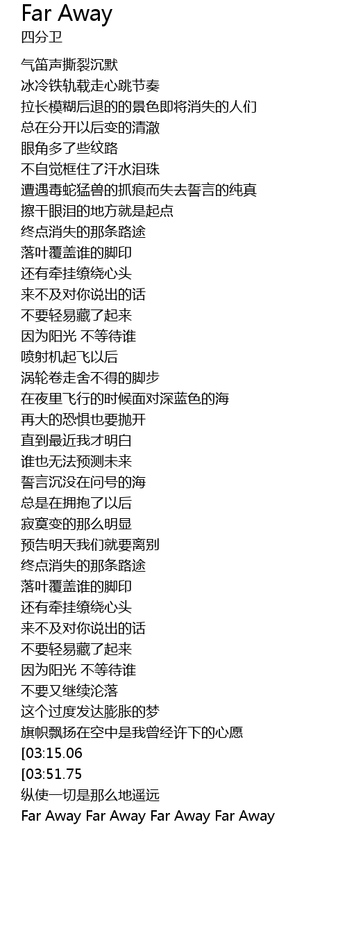 | [04:16.13] | Far Away Far Away Far Away Far Away |