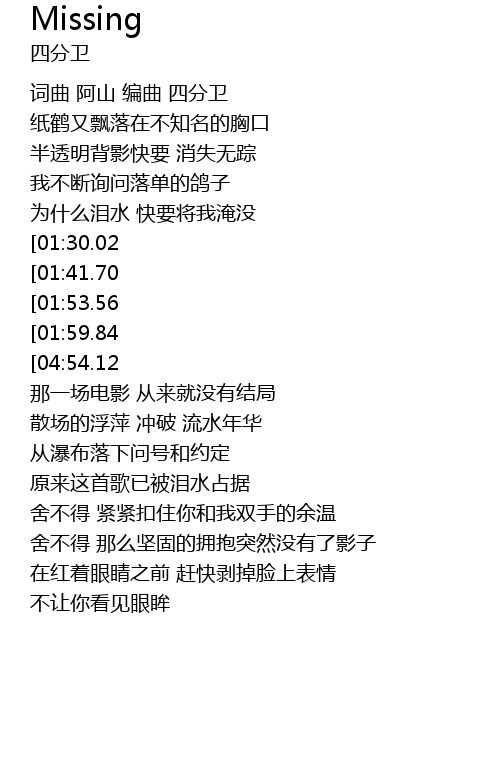 | [00:58.15] | 半透明背影快要 消失无踪 |