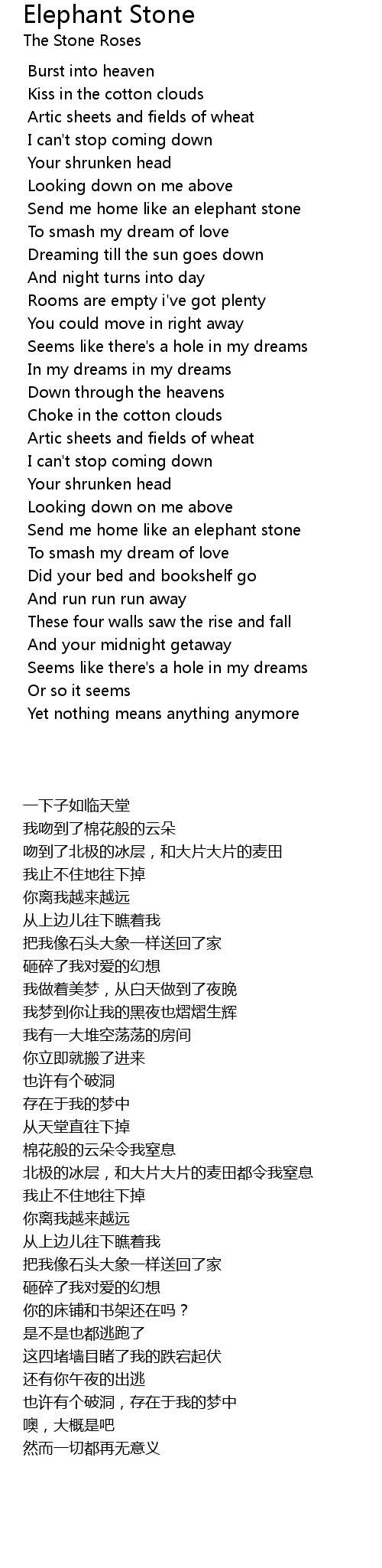 | [01:44.210] | 把我像石头大象一样送回了家 |