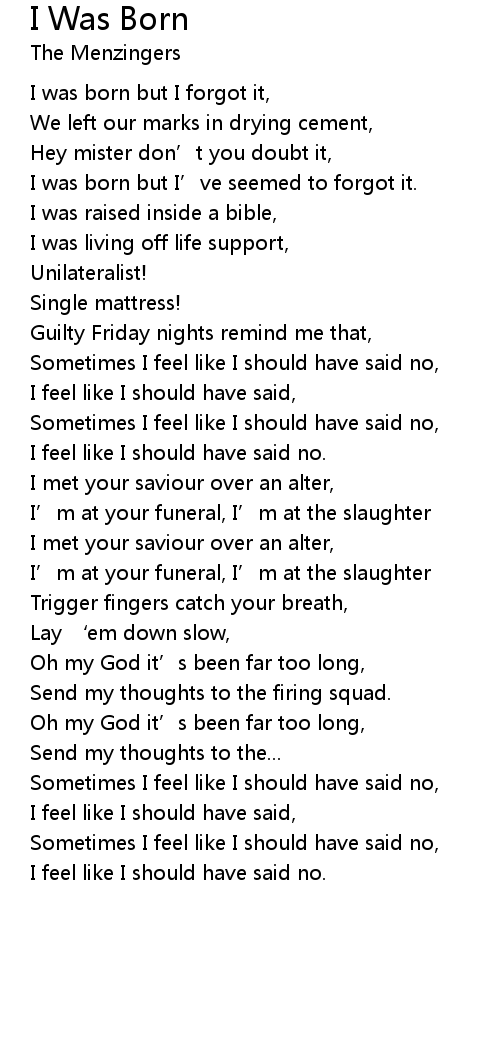| I was born but I’ve seemed to forgot it. | |