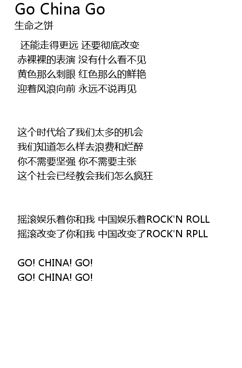 | 歌曲 | Go China Go |