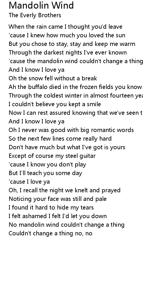 'cause the mandolin wind couldn't change a thing |