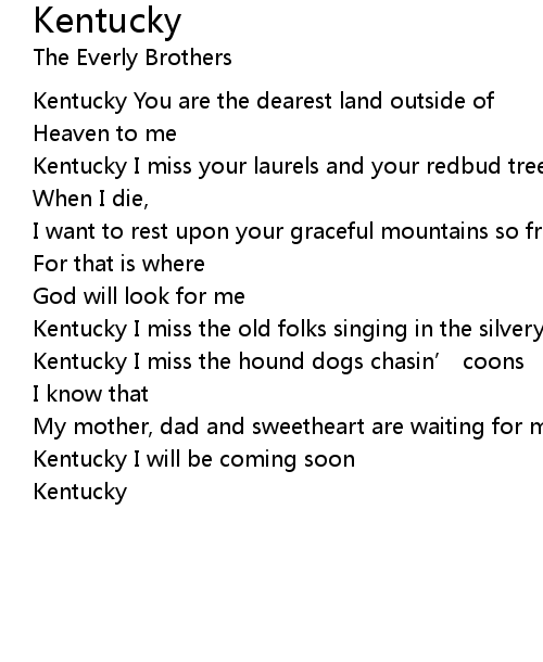 | Kentucky I miss the hound dogs chasin’ coons | |