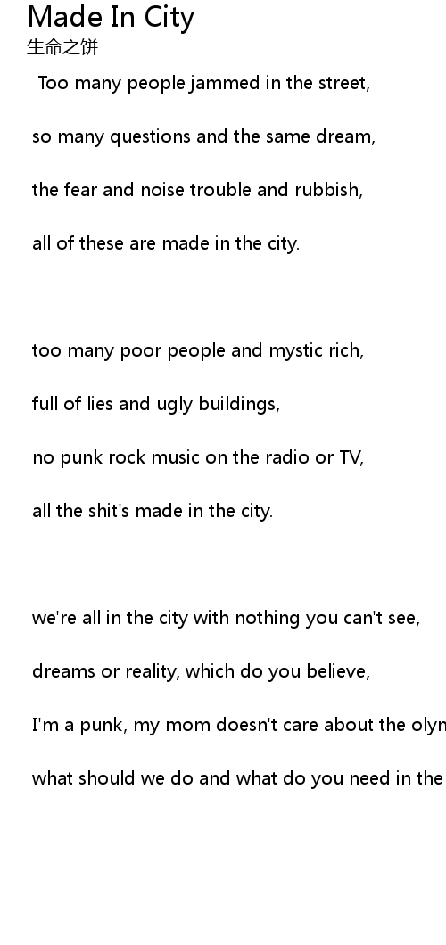 | 歌曲 | Made In City |