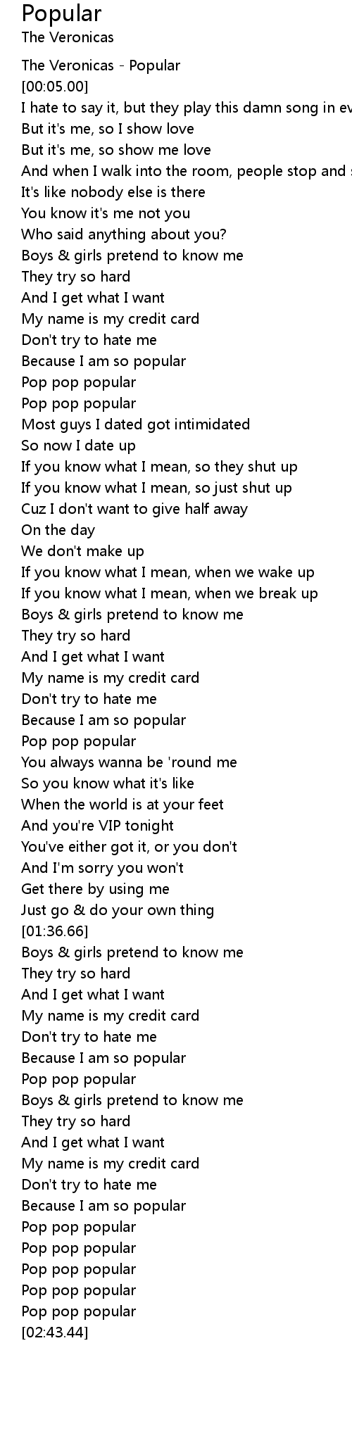 [00:02.00] The Veronicas - Popular