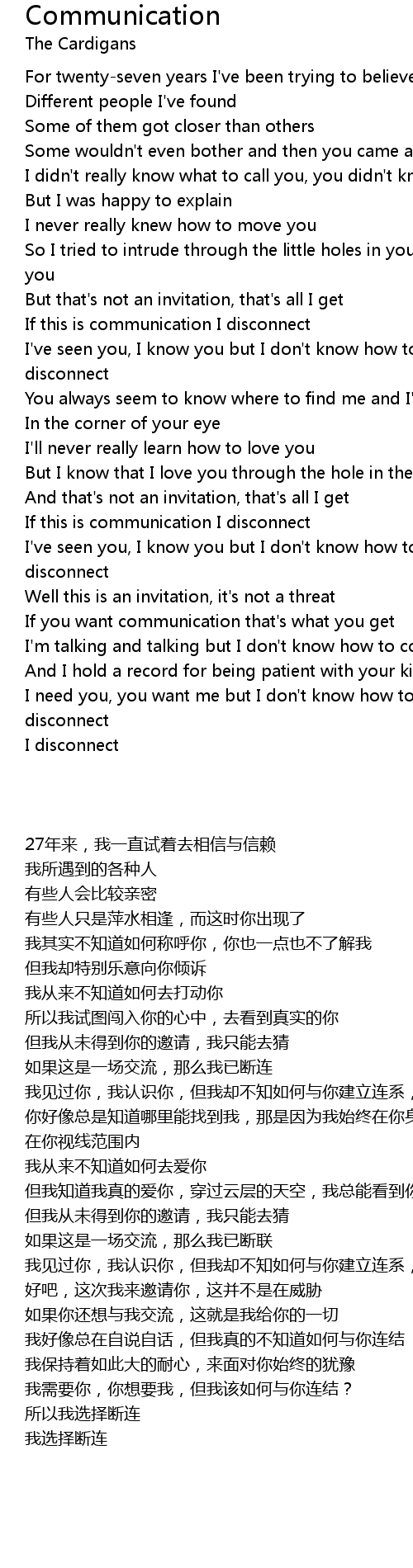 I need you, you want me but I don't know how to connect so I disconnect |
