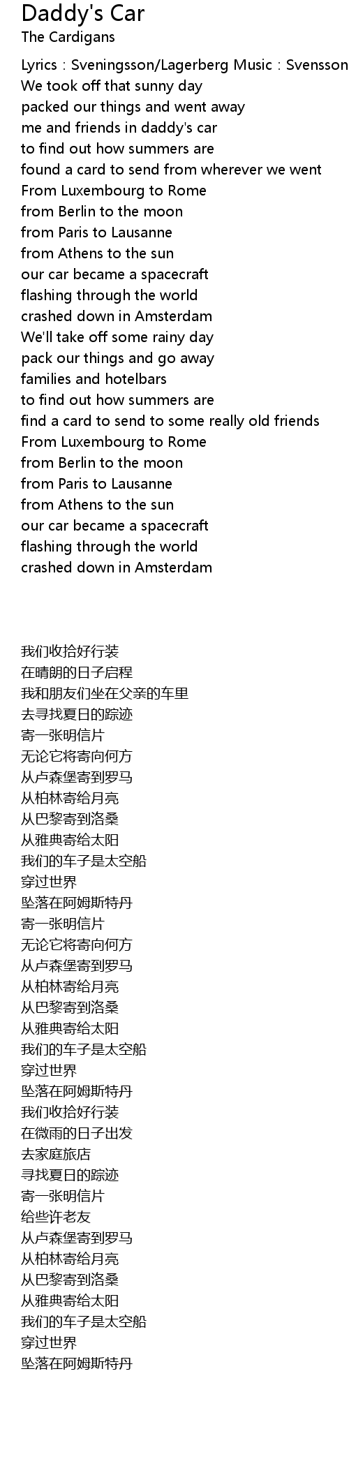 | 歌曲 | Daddy's Car |