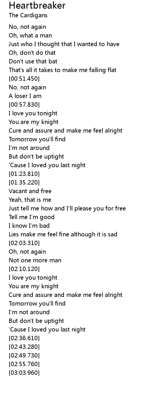 | [00:45.330] | That' s all it takes to make me falling flat |