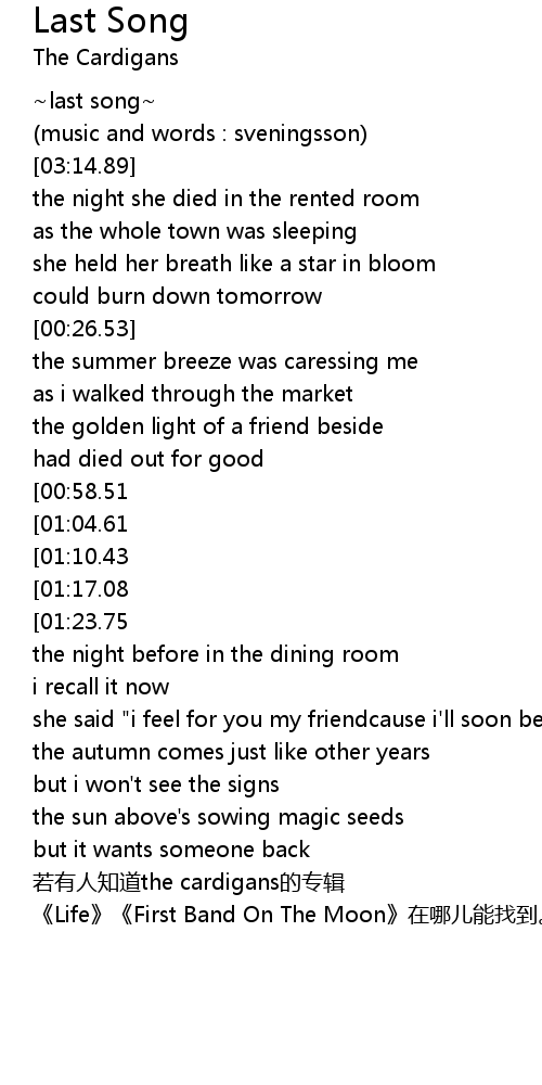 | [03:15.59] | 若有人知道the cardigans的专辑 |