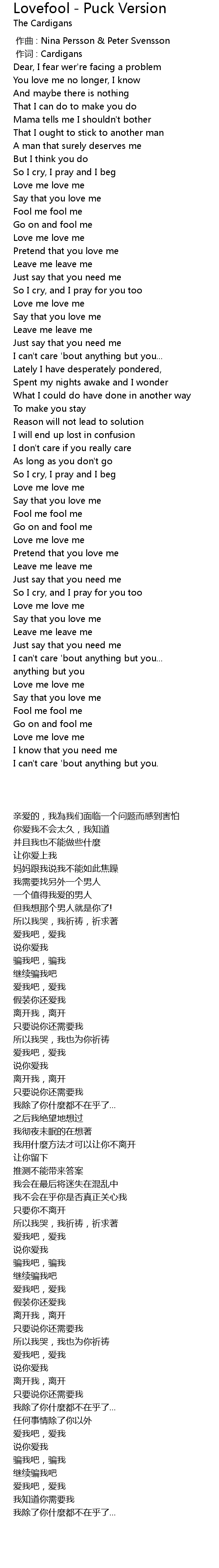 | 歌曲 | Lovefool - Puck Version |