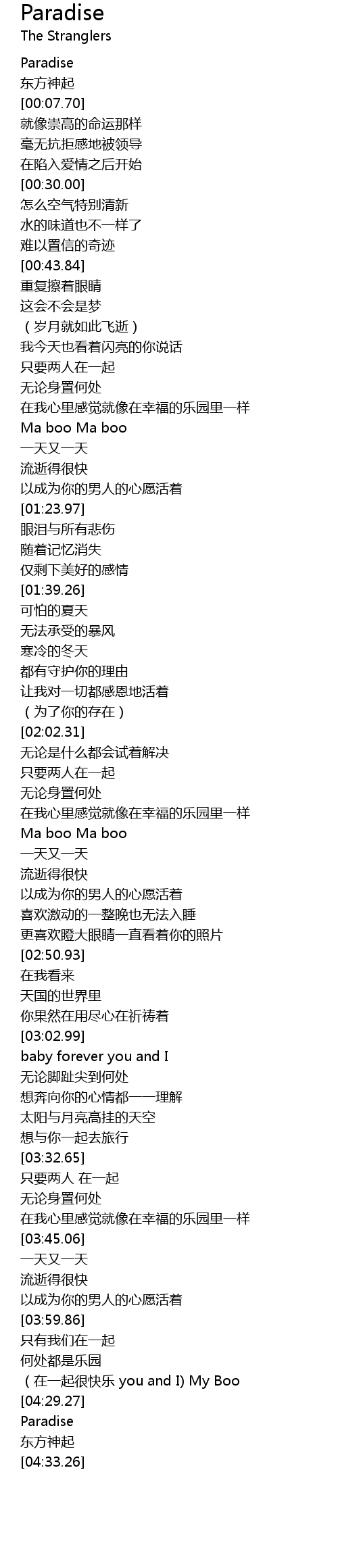 | [04:31.58] | Paradise |