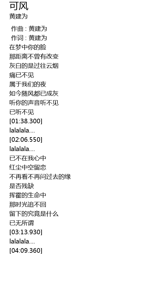 | [00:01.00] | 作词 : 黄建为 |