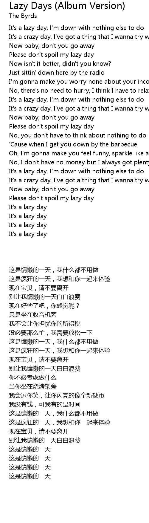 It's a lazy day, I'm down with nothing else to do |