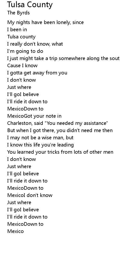 Tulsa County 歌词