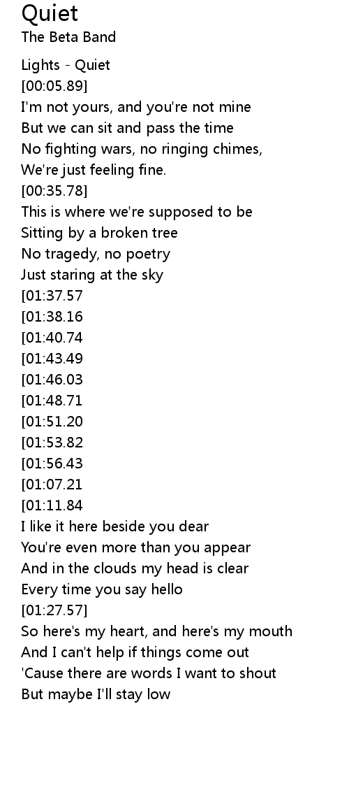 [02:17.11][01:56.43][01:04.89] Just to be quiet