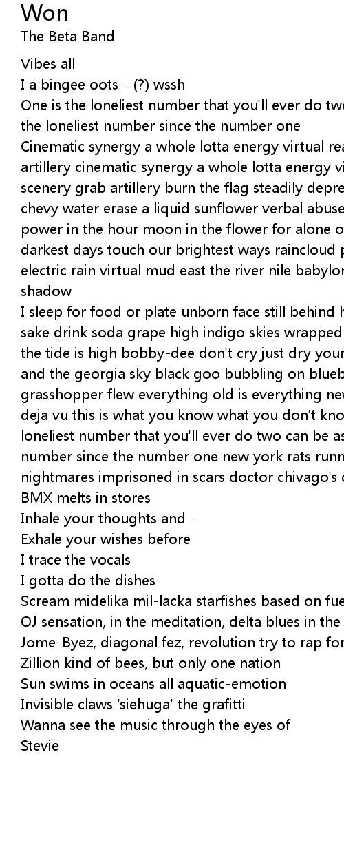One is the loneliest number that you'll ever do two can be as bad as one it's the loneliest number since the number one |