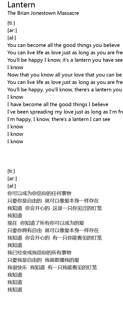 You'll be happy I know, it's a lantern you have seen |