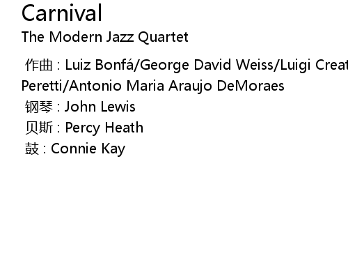 | [00:00.000] | zuo qu : Luiz Bonfa George David Weiss Luigi Creatore Hugo E. Peretti Antonio Maria Araujo DeMoraes |