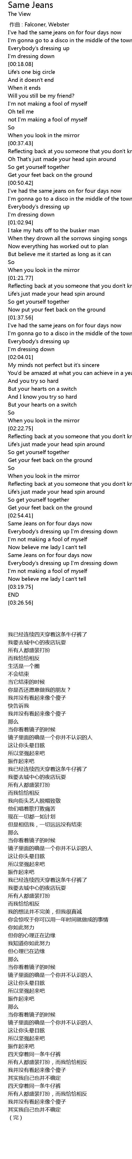 | [03:05.27] | 四天穿着同一条牛仔裤 |