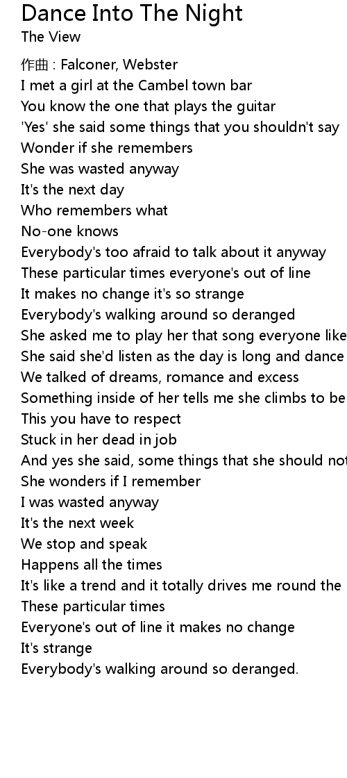 | She said she' d listen as the day is long and dance shed dance into the night | |