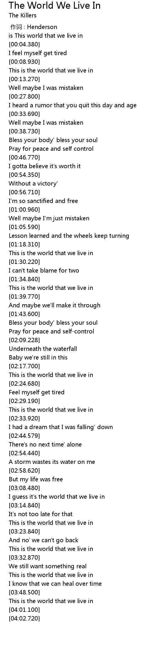 | [03:53.990] | This is the world that we live in |