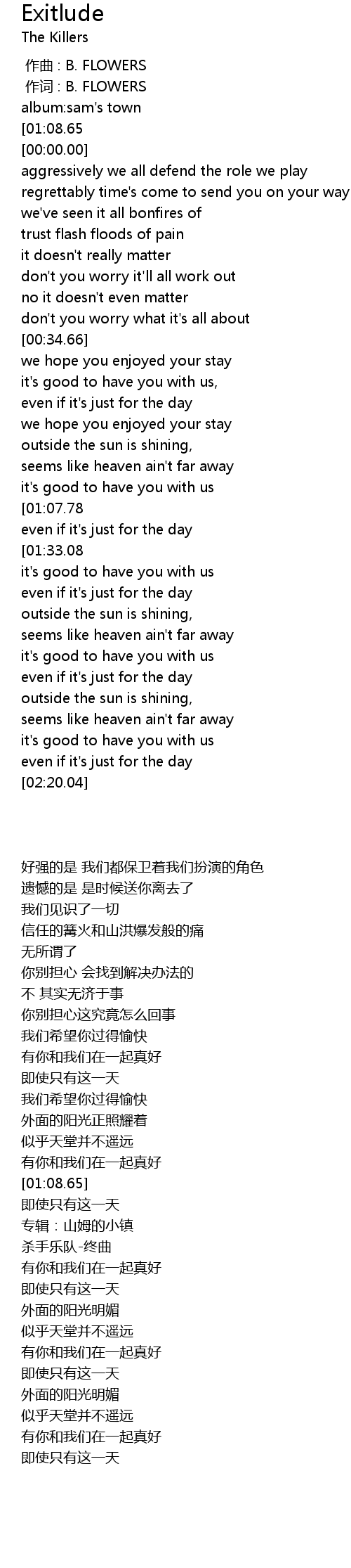 | [01:34.26][01:08.65] | the killers-exitlude |