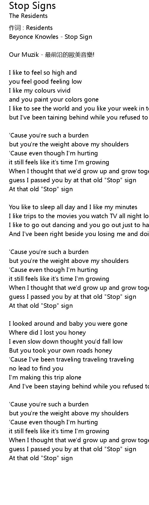 | 歌曲 | Stop Signs |