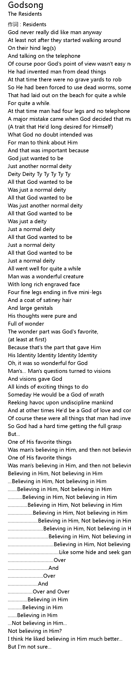 | 作词 : Residents | |